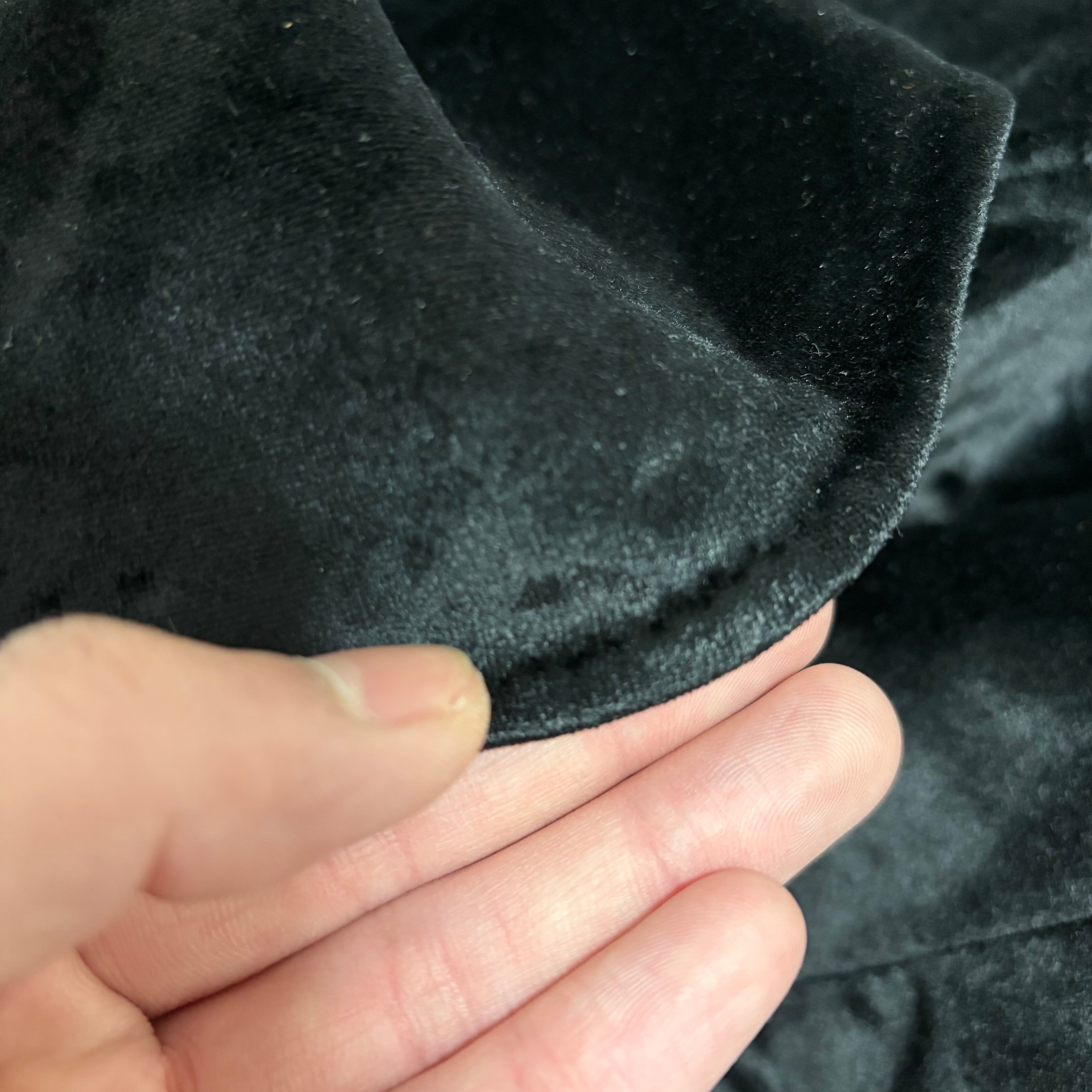 通常のベロアより更に艶やかな輝きが増した強めの光沢感を放つブラックベロア