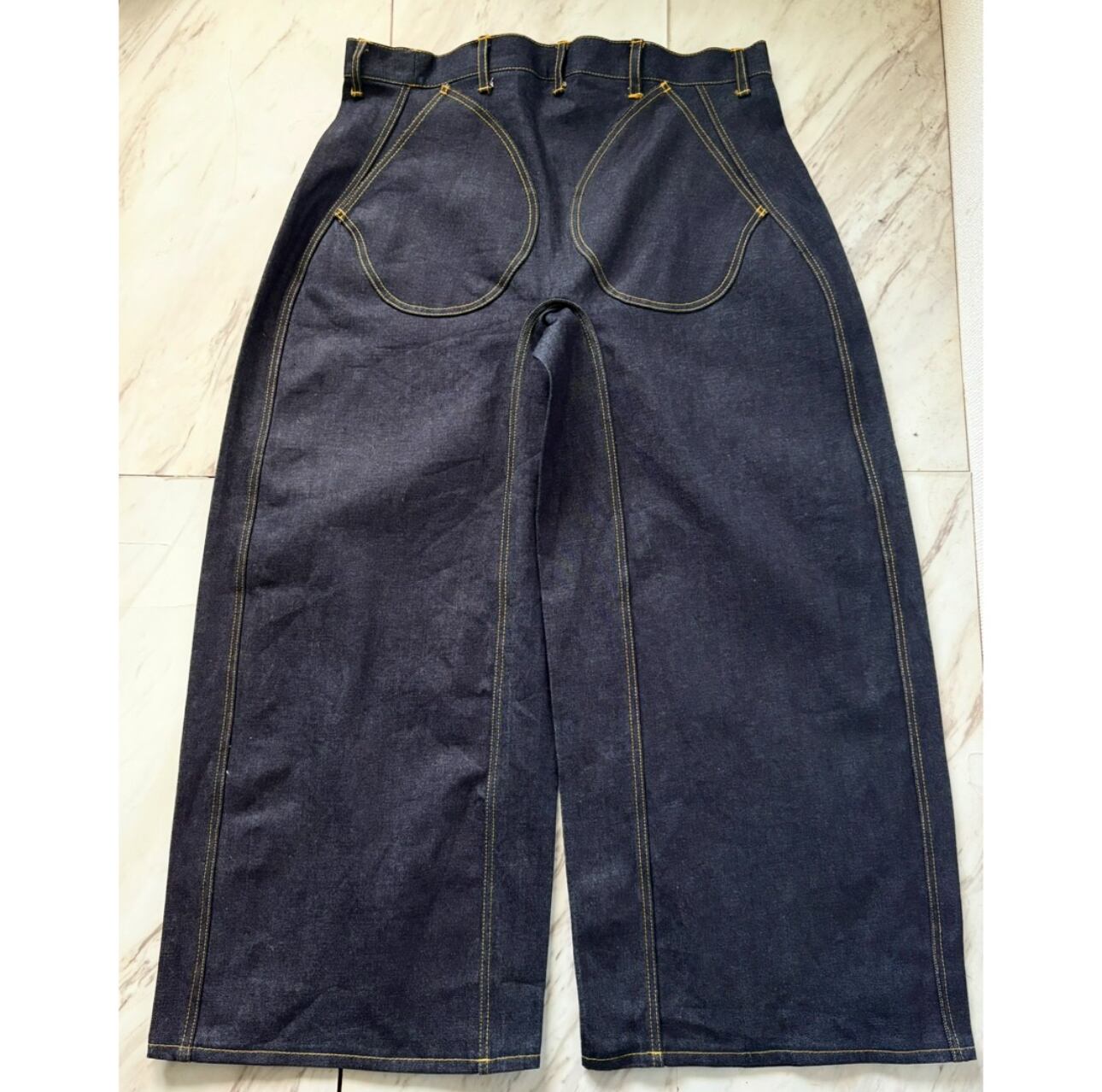 極太のワイドシルエット 股部分とサイドにマチが付いているので横から見ても立体的なシルエットとなります